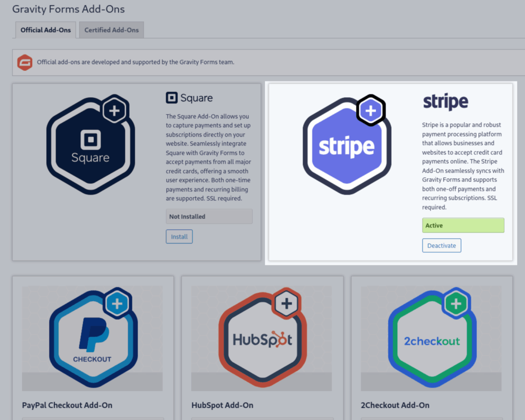 First, grab the Stripe add-on for Gravity Forms in the same place you found the User Registration add-on.