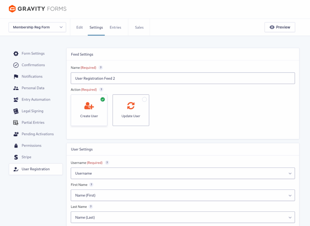 Setting up user registration forms in Gravity Forms
